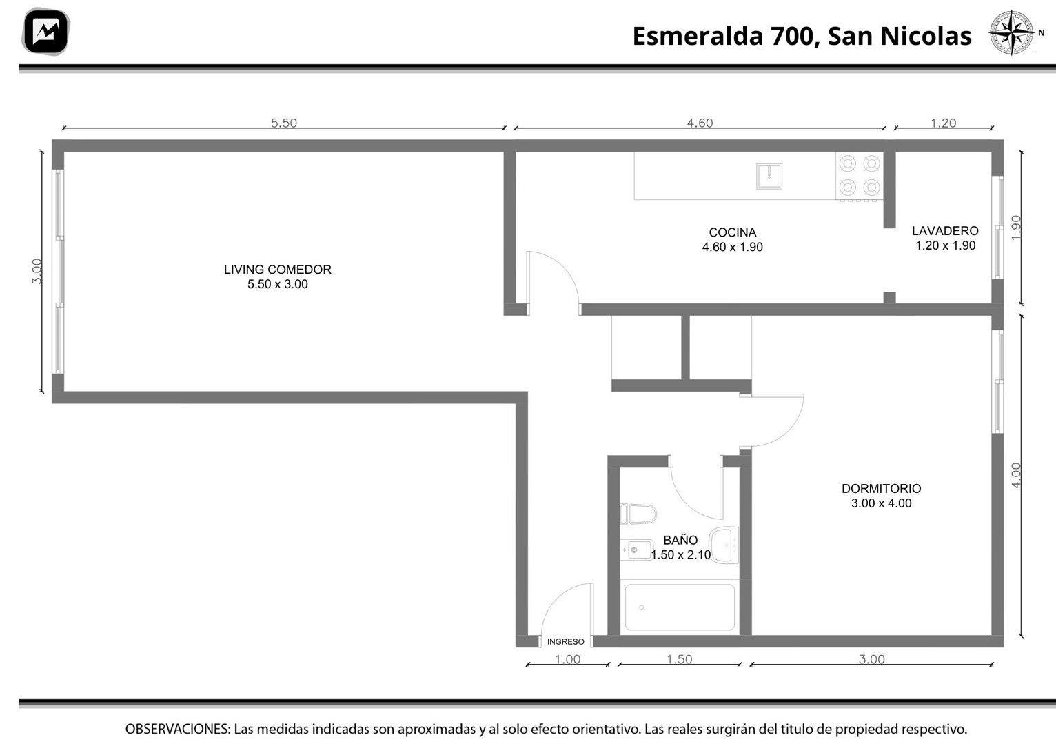 Venta departamento de dos ambientes al frente, ubicado en Esmeralda al 700, San Nicolás. Luminoso, piso alto. Ofrece palier privado con acceso al ascensor principal, al ascensor de servicio y a la escalera de emergencia. Living comedor con orientación Noroeste, vista a la calle Esmeralda y aire acondicionado empotrado. Dormitorio con placard, aire acondicionado empotrado, caja fuerte empotrada, y ventana al aire y luz del edificio. Pisos de parquet en living comedor y dormitorio. Cocina independiente con acceso al lavadero. Lavadero con ventanal al pulmón de edificio. Baño completo con radiador. Medidas: 50,58 m2 totales. Cubiertos: 48,61m2. Semicubiertos: 1,98 m2 AGIP agosto 2025 ar$15.015,26. Expensas noviembre 2025 ar$190.000 Apto profesional independiente (abogados, médicos, arquitectos, ingenieros, contadores, psicólogos). No apto mascotas. Ubicación privilegiada. A metros de Av. Córdoba. A 2 cuadras de la peatonal Florida y a 4 cuadras de Av Santa Fe. Zona con excelente conectividad y gran variedad de medios de transporte. Barrio en plena revalorización por su desarrollo urbano, oferta gastronómica, cultural, comercial y afluencia turística. Comercializa Christian Jakubowicz Bienes Raíces Mat. CUCICBA 8412 Con accesibilidad para personas con movilidad reducida (Ley 5115). -------------- - - - Toda la información del aviso, incluyendo medidas, precio, impuestos, servicios, etc. son estimativos, sujetos a modificación y no vinculantes, según lo dispuesto en el art. 973, Cód. Civ. y Com. Toda la información del aviso, incluyendo medidas, precio, impuestos, servicios, etc. son estimativos, sujetos a modificación y no vinculantes, según lo dispuesto en el art. 973, Cód. Civ. y Com.